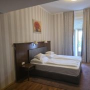 Szállodánk első emeltén található, modern bútorokkal berendezett városi panorámával rendelkező duplaágyas szobák, tusolós fürdőszobával, balkonnal.