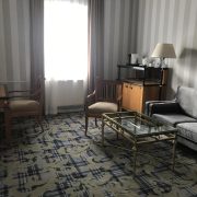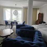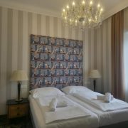Belső udvarra néző 68 m2-es megújult elnöki lakosztály. A szobában külön tágas nappali ülősarokkal és étkező asztallal, és háló rész található franciaággyal. A nagyméretű fürdőszoba káddal és tusolóval egyaránt felszerelt.