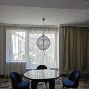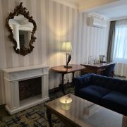 Belső udvarra néző 68 m2-es megújult elnöki lakosztály. A szobában külön tágas nappali ülősarokkal és étkező asztallal, és háló rész található franciaággyal. A nagyméretű fürdőszoba káddal és tusolóval egyaránt felszerelt.